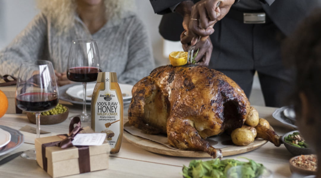El pavo de ‘Acción de Gracias’ suele ser relleno o asado. La presentación del mismo puede ser muy variada. Puede presentarse entero en una bandeja o bien trinchar en lonchas. La salsa es uno de los aspectos más importantes que puede variar según los gustos y la receta que se siga en la preparación de la carne. Desde MAES Honey, como no podría ser de otro modo, te recomendamos que la elabores con miel. ¡Disfruta de una de nuestras delicias en una de las fiestas más importantes de Norteamérica!