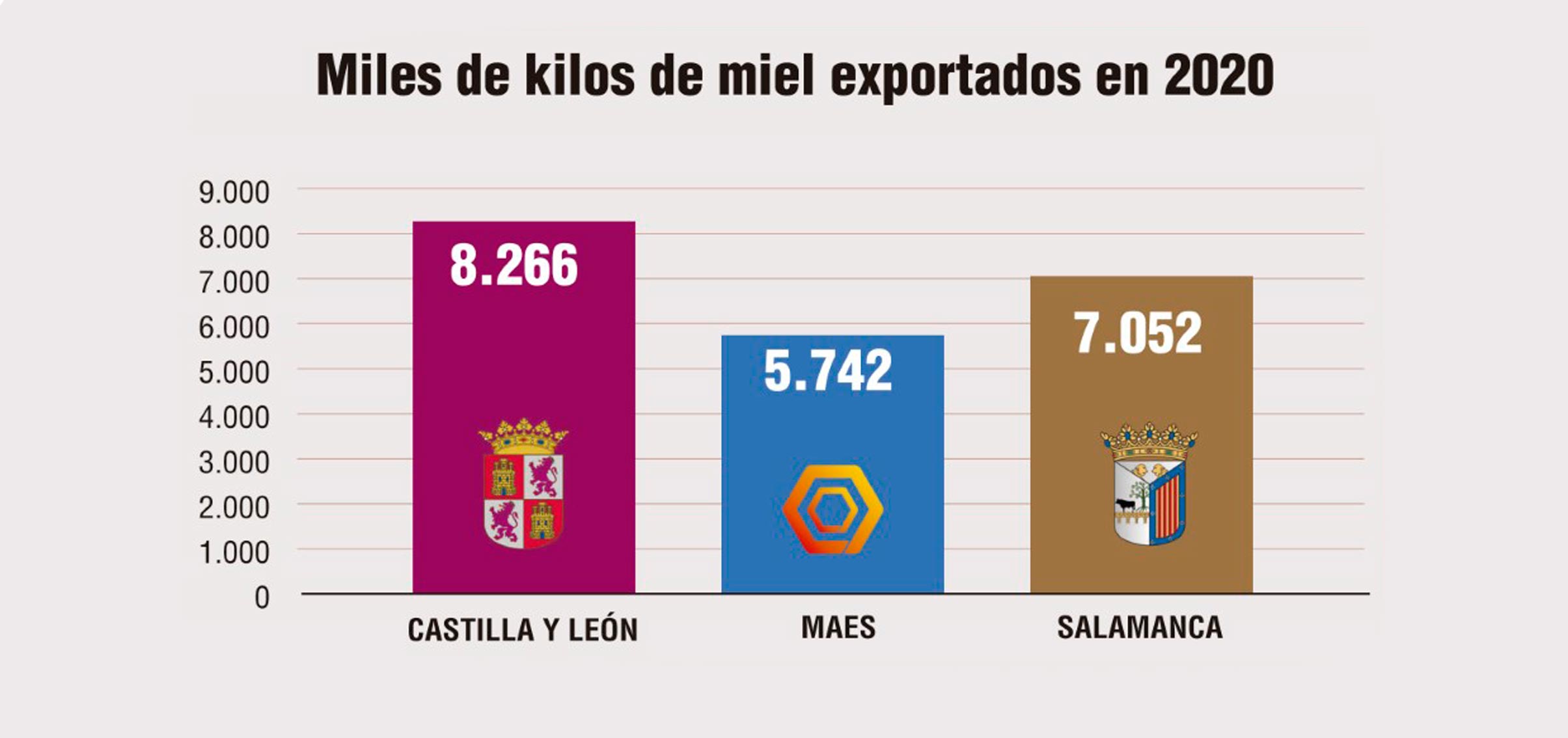 Un año más destacan las cifras de exportación de miel de Maes Honey en 2020, alcanzan el 81,43% de la miel que exporta Salamanca, que a la vez supone un 69,47% de la miel exportada en Castilla y León y un 20,31% de la miel de España.